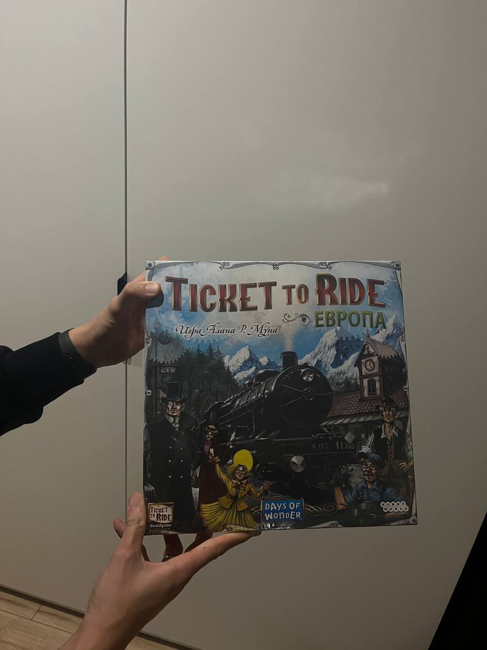Билет на поезд. Европа - это отличная настольная игра, как для компании, так и для семейного досуга. По жанру игра классифицируется, как еврогейм. А значит, вся борьба сводится тут к набору очков. Основная механика сбор комбинаций карт одного цвета. Одновременно с этим, в игре достаточно много различных тактик и стратегий для достижения победы. Да и противостояние между игроками есть, хоть и неявное. Но порой в центральной Европе разгорается настоящая "холодная война". В свой ход игрок может выполнить одно из 4-х действий: 1.взять карты и пополнить свой парк (если брать много, то можно не оставить карт оппонентам, что позволит свободно прокладывать любые маршруты, главное не переусердствовать) 2.построить перегон (15 или 21 очко за раз никогда не бывают лишними, используйте это, пока никто не занял) 3.взять новые маршруты (если железнодорожная сеть достаточно развита, могут попасться практически или полностью готовые маршруты, так что не пренебрегайте этим действием, хотя риск штрафа тоже есть) 4.построить станцию (иногда правильная постройка станции помогает завершить большой маршрут, сэкономив время, хотя и теряешь за каждую 4 очка) Игру, кстати, ещё успел приобрести в OZ по очень вкусной цене. Поэтому поговорим не много о качестве компонентов. Наборы вагончиков и станций просто бесподобные, это может уже служить хорошим мотивом к покупке игры. Также стоит отметить, что их здесь аж 5 комплектов, да и ещё к каждому комплекту имеется по 3 запасных вагона, каждого из цветов. Поле и маркеры не безупречные, но терпимо. Немного подводит в этом наборе качество игровых карт. Они тонкие как всегда у Hobby World и "стандартной" типографии. Плюс остался мусор от обрубки карт, наверное, забыли вытряхнуть, когда упаковывали. На картах имеются небольшие смещения, и немного затирается печать, но в принципе это не сильно сказывается на игровом процессе. Если не хватать жирными и мокрыми руками, прослужат хорошо и без протекторов. Отдельно хотелось бы выделить, что в этой игре есть прекрасный органайзер для хранения всех компонентов. У меня это единственная игра, которая хранится без зип-локов (пакетиков). А теперь собственно плюсы и минусы игры, которые я отметил для себя. Начнём с плюсов: + правила всего 3 странички (изучение у меня заняло 10 минут) + большой размер игрового поля, где-то как в Игре Престолов или Робинзоне (люблю большие поля) + могут играть от 2 до 5 человек (если небольшая компания, никто не остаётся в стороне) + новые механики (если сравнивать с ?aquo;Билетом на поезд по Америке») + превосходное качество вагонов и станций (их действительно хочется брать и ставить) + динамичность (в игре 1 раунд проходит очень быстро и замедляется лишь, когда кто-то берёт новые карты маршрутов) + стратегичность (существует множество способов достижения победы) + не большая длительность партий (даже при полном составе и новичках игра не длится больше 1,5 часа, поэтому за вечер можно сыграть несколько раз) + реиграбельность (множество карточек маршрутов задаёт каждый раз новые условия действий и это заставляет действовать по-другому и играть с удовольствием снова и снова) + хорошо заходит как для компании друзей, так и на досуге с семьёй (хотя для 8-летних детей с первого раза тяжело заходит) + на коробке отсутствует всякого рода реклама (чувствуется, что держишь в руках действительн