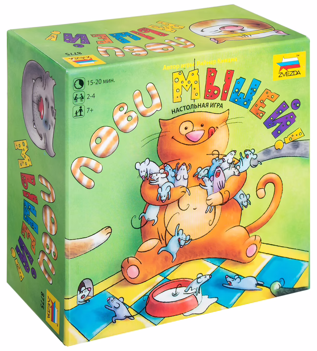 "Лови мышей" (бывшая "Кошки-мышки") – это быстрая веселая семейная игра с простыми правилами. Игроки выступают в роли котов, которые хотят поймать как можно больше мышек. Бросив кубик с разноцветными гранями, каждый может приманить подходящую по цвету мышку, и тот игрок, чья охота окажется самой удачной, станет победителем. Но надо быть очень внимательным и осторожным – коты так и норовят стащить друг у друга уже пойманных мышек...