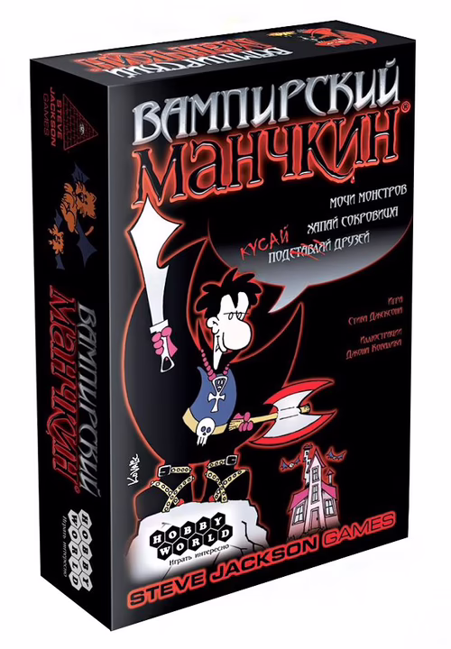 Город окутан холодным туманом и опасные тени мелькают за его пеленой... Лунный свет едва пробивается сквозь облака и где-то воют волки... Кто-то, жаждущий человечьей крови, выходит в такую погодку на охоту... Бегите или прячьтесь, это страшный и ужасный – Вампирский Манчкин!