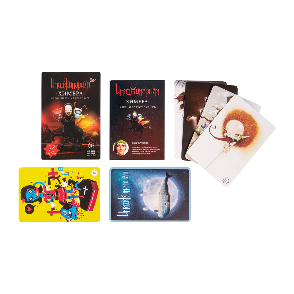 Основная идея сета – собрать побольше страшных и при этом очень привлекательных в плане разглядывания картинок, к которым невероятно интересно придумывать ассоциации. Если вы любите весёлые партии, то, наверное, набор вам не очень понравится, но если вы цените Имаджинариум и обожаете новые необычные ощущения, то Химера – самое то.