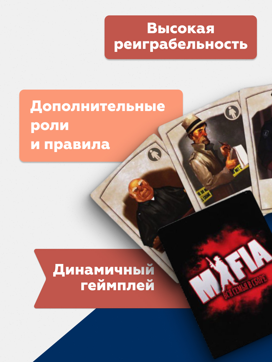 Если вы отправляетесь в поездку или на вечеринку, отличным вариантом будет компактная версия "Мафия. Вся семья в сборе". В наборе вы найдете карточки мирных жителей, мафиози и ведущего. Каждый игрок будет наделен своими обязанностями и полномочиями. В настольной игре появляются дополнительные роли и правила: особые мирные жители могут помочь детективу в поисках преступников и защитить город от преступного произвола. А мафиозные главари будут делать всё, что в их силах, чтобы завладеть инициативой.
