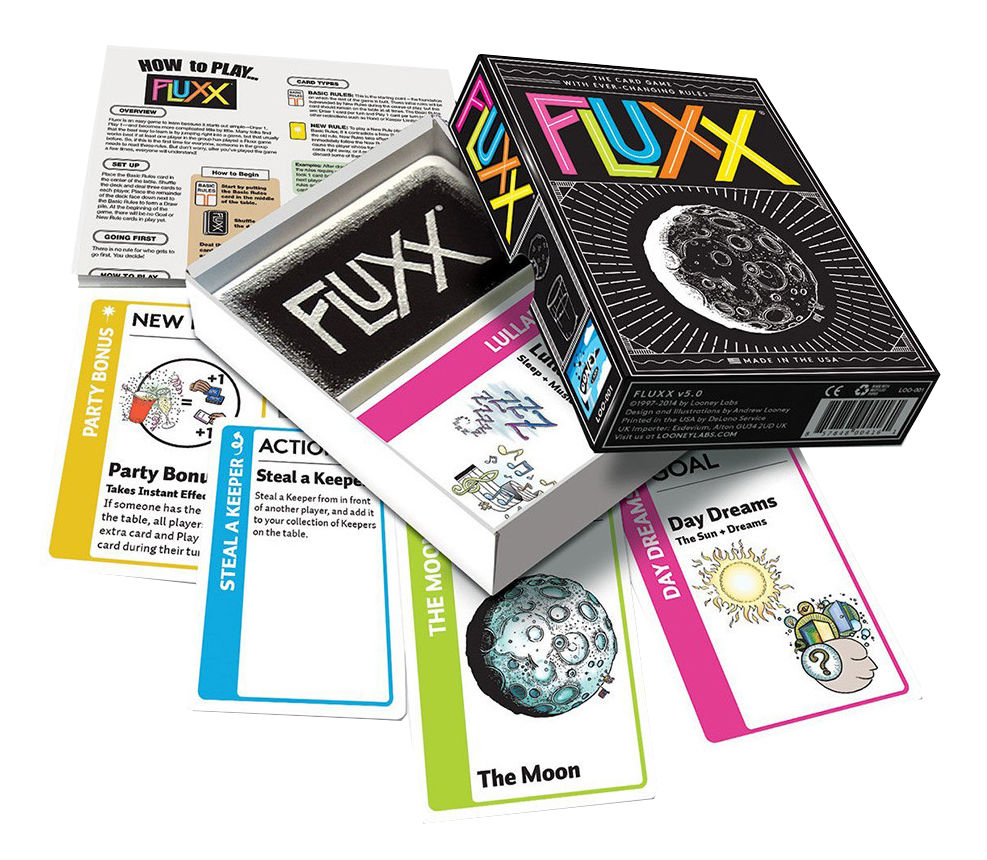 Научиться играть во Fluxx проще некуда: тяни карты, играй карты, а остальное схватишь на лету. Чтобы победить, тебе пригодится фонящая картошка. Или подтаявшая шоколадка. А может, молоко с печеньками. Нельзя сказать заранее – правила игры постоянно меняются, главное – успеть крикнуть, что ты победил. Какова цель игры? Мир да любовь или война да смерть – решать игрокам.