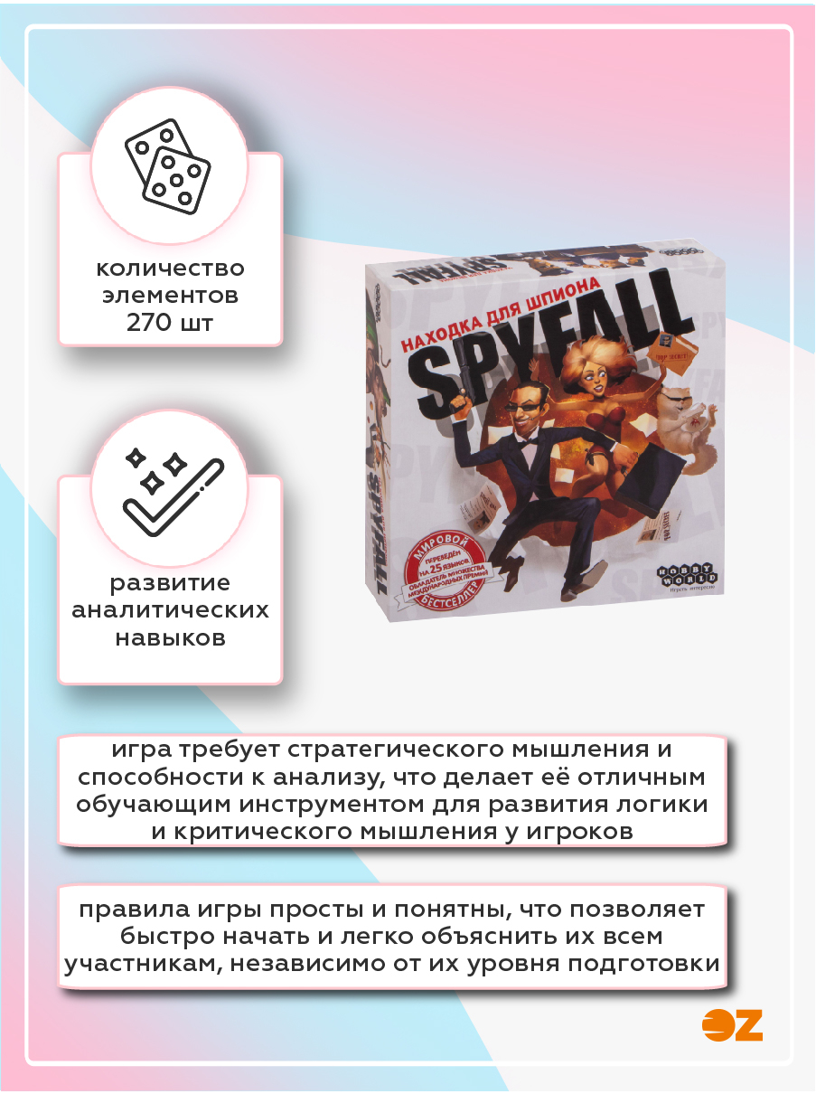 Игра "Находка для шпиона" даст возможность каждому побывать как в шкуре рискующего жизнью шпиона, так и идущего по следу врага спецагента. Все происходит в разговорном режиме стиля "Мафии". Всего несколько минут есть у участников, чтобы вычислить шпиона на важном объекте. Это может быть овощебаза, космическая станция, подводная лодка...