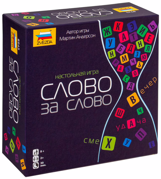 Слово за слово – это динамичная и оригинальная игра в слова, которую мы вам спешим представить. Суть игры проста: бросаем кубики, засекаем 30 секунд и начинаем придумывать слова, которые начинаются на одну из выпавших на кубиках букв. Слова повторять нельзя, задействованную букву игрок забирает себе. Чем более редкая буква, тем больше очков получит игрок. Темы для придуманных слов определяются заранее с помощью карточек.