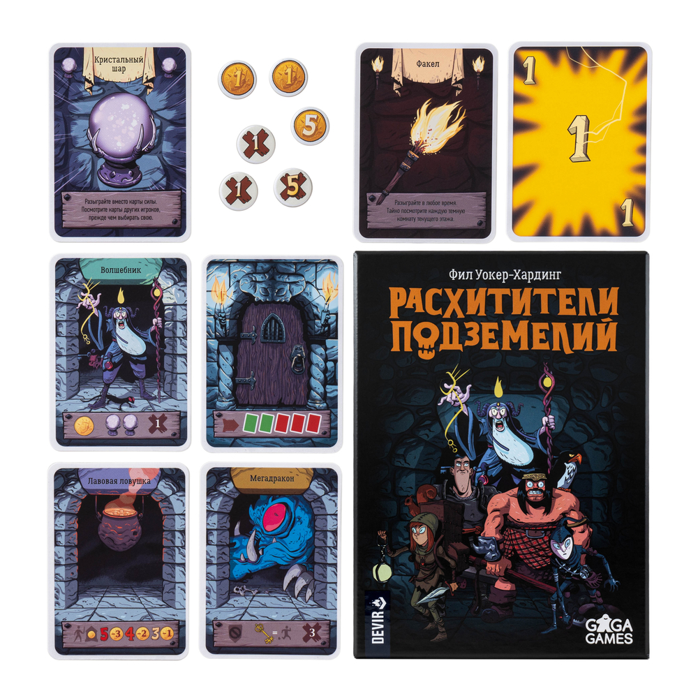 Соревнуясь за самый внушительный куш, игроки будут пытаться подставить друг друга, предсказать ходы соперников и продумывать свои действия на несколько ходов вперед. Расхитители подземелий – это отличная несложная игра для небольшой компании друзей.