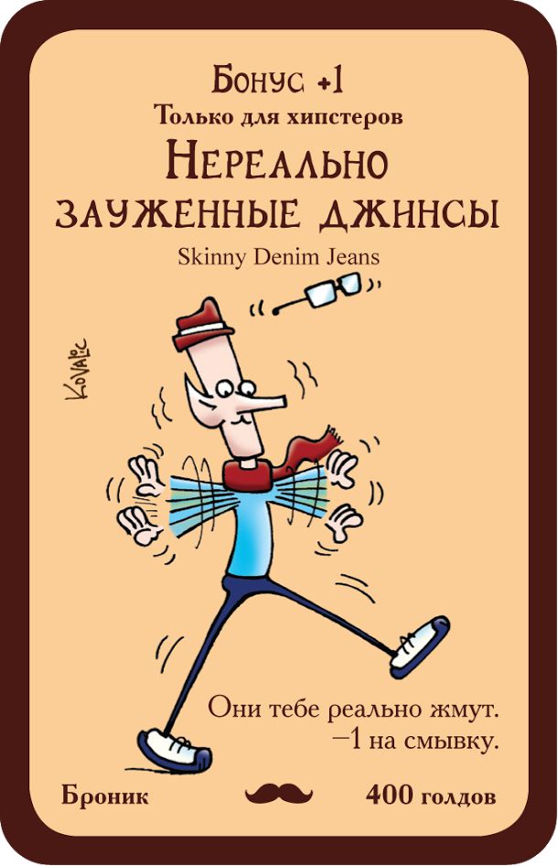 Успей сыграть в "Манчкина" до того, как это станет мейнстримом. (Упс! Кажется, ты не успел...) Напяль нереально зауженные джинсы, хватай свой любимый обезжиренный декаф и иди мочить монстров корпоративной машины! Двигай против системы, будь в тренде!