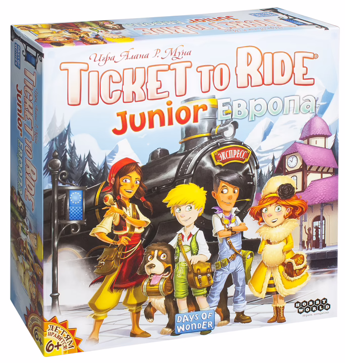 "Ticket to Ride. Европа" – знаменитая настольная игра о приключениях на железной дороге. В версии Junior к игре смогут присоединиться самые юные путешественники. Красочные иллюстрации, упрощённые правила, но всё такой же захватывающий игровой процесс. Собирайте карты вагонов и локомотивов и с их помощью выполняйте задания, прокладывая пути между городами. Победит тот, кто первым выполнит 6 заданий. "Ticket to Ride Junior. Европа" поможет увлекательно провести время и лучше узнать географию Европы!