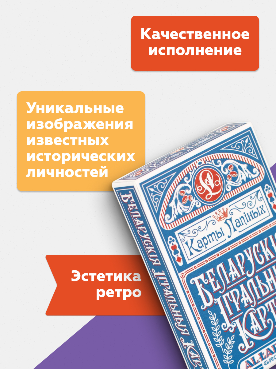 Беларуские игральные карты "Карты Лапиных" – это уникальные игральные карты, изготовленные на основе карт, которые производились на гродненской фабрике Лапиных 80 лет назад.