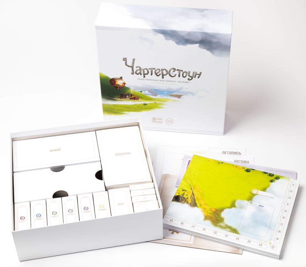 Чартерстоун – это увлекательная игра для 1-6 человек, в которой вам предстоит заняться постройкой деревни, и которая широко использует популярную механику Наследия.