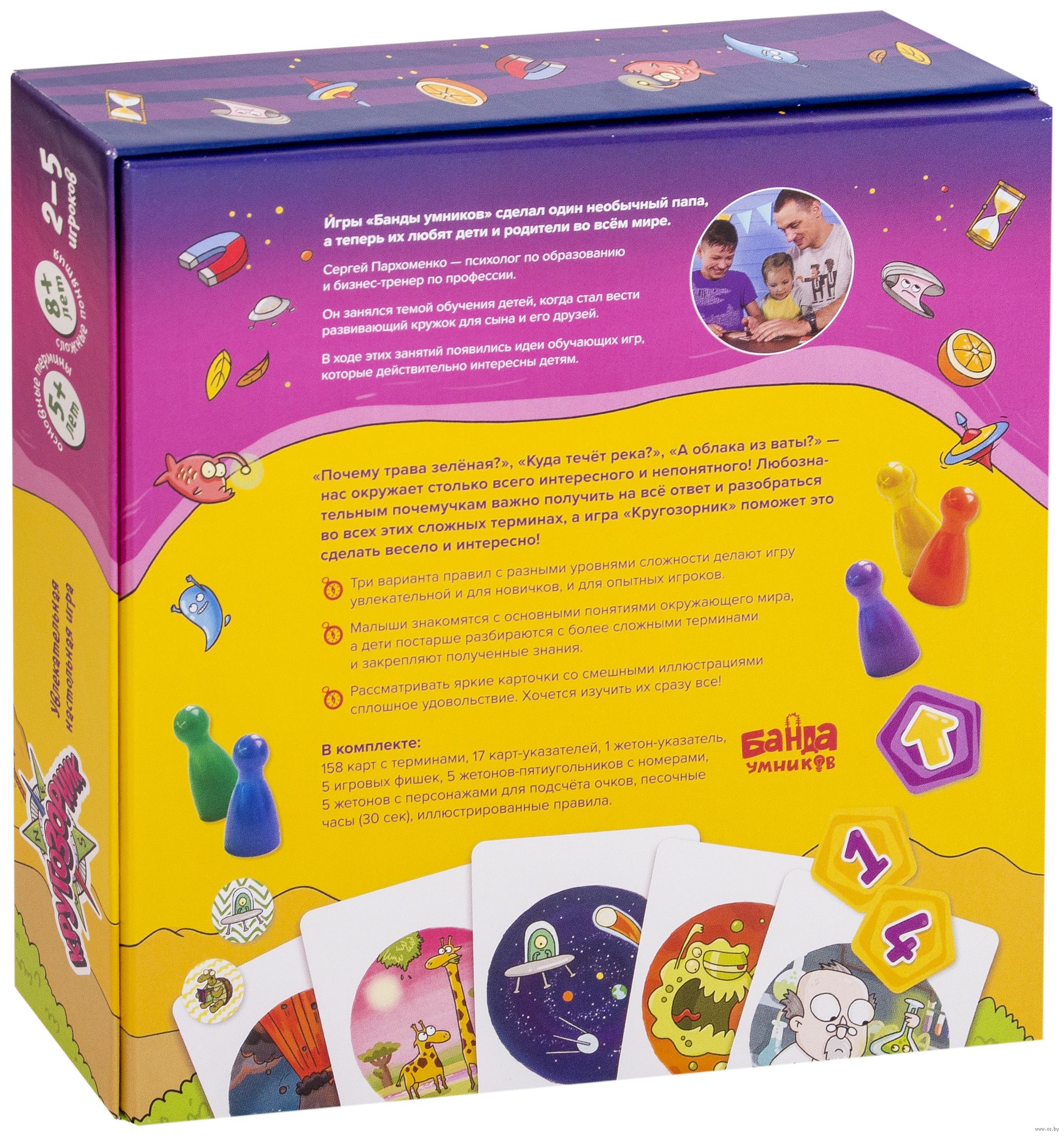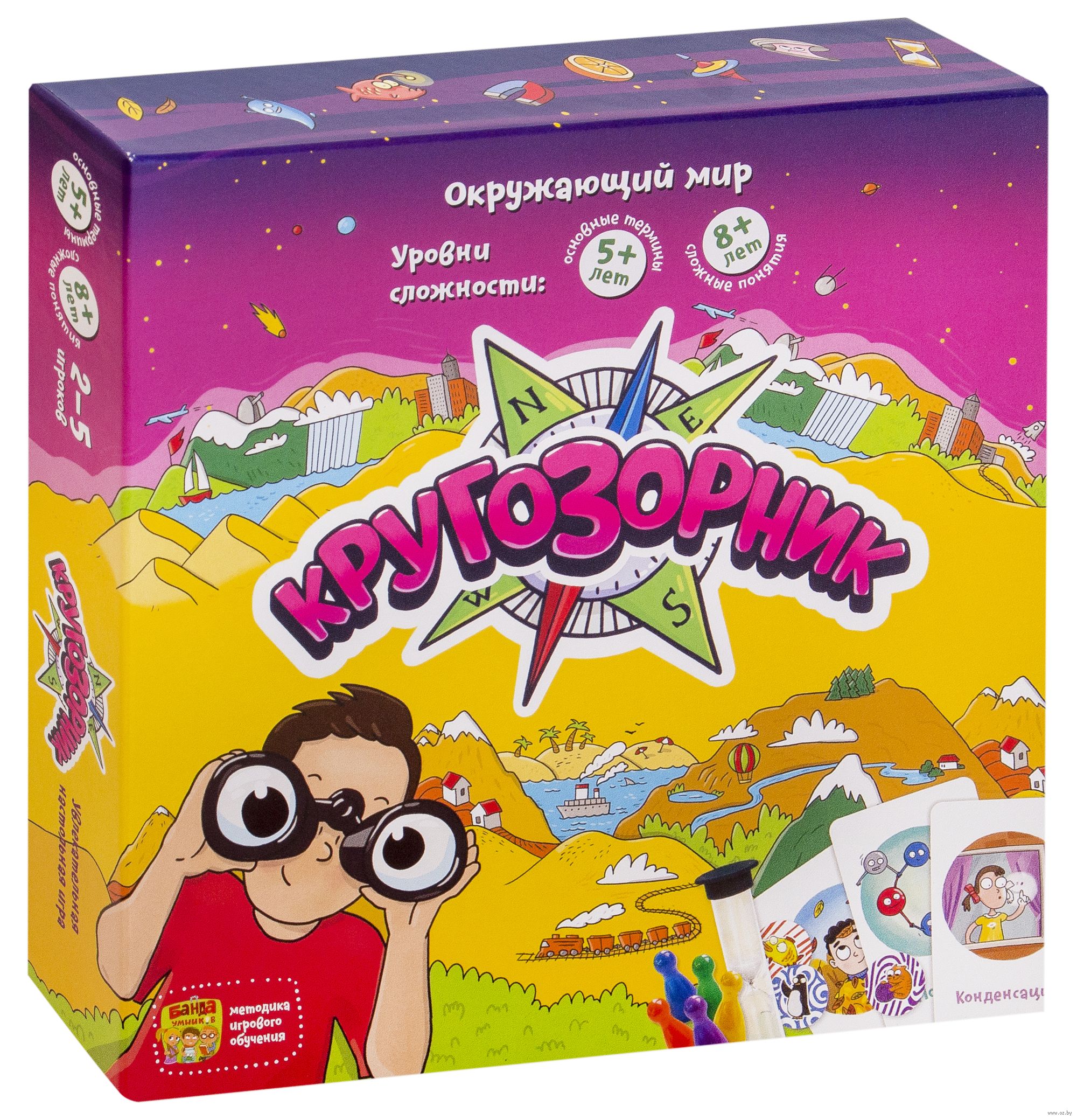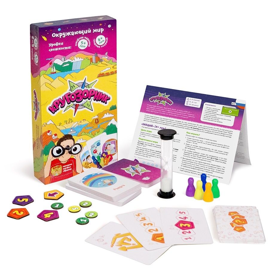 Представьте, что вы держите в руках целый мир, а точнее даже целую вселенную! И всё это в одной коробке: ведь в "Кругозорнике" прячется столько всего! Здесь молекула и галактика, травоядное и хищник, магма и гололёд поселились по соседству на ярких карточках. Забавные иллюстрации на картах притягивают, как магнит. Хочется рассмотреть и изучить сразу всё!