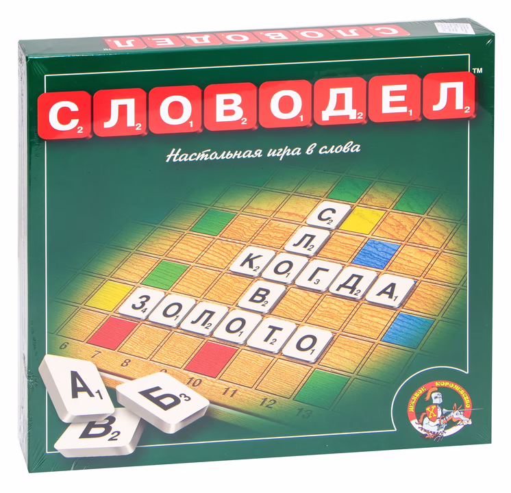 Эта интеллектуальная игра – IQ-тренажер по методу Монтессори, с ним вы прокачиваете мозг и учитесь молниеносно придумывать новые слова. Настольная игра "Словодел", непременно понравится вашему ребенку и займет его внимание надолго. В начале игры, фишки выкладываются картинками вниз, перемешиваются и каждый игрок берет по семь фишек. Первое слово располагается так, чтобы оно пересекало коричневую клетку в центре поля. Слова составляются по вертикали и горизонтали и должны читаться сверху вниз, либо слева направо.