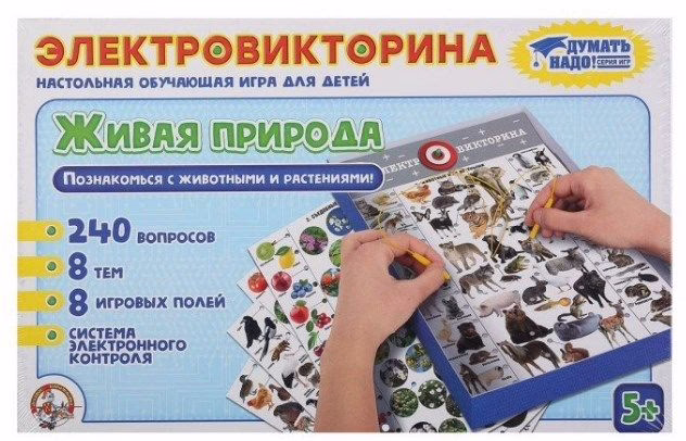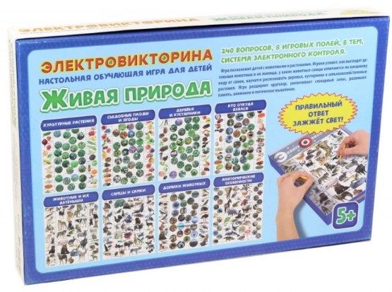 Эта обучающая игра познакомит детей с животными и растениями. Игроки узнают, как выглядят детеныши животных и их жилища, у каких животных самцы отличаются по внешнему виду от самок, научатся распознавать деревья, кустарники и сельскохозяйственные растения. При правильном ответе загорается свет.