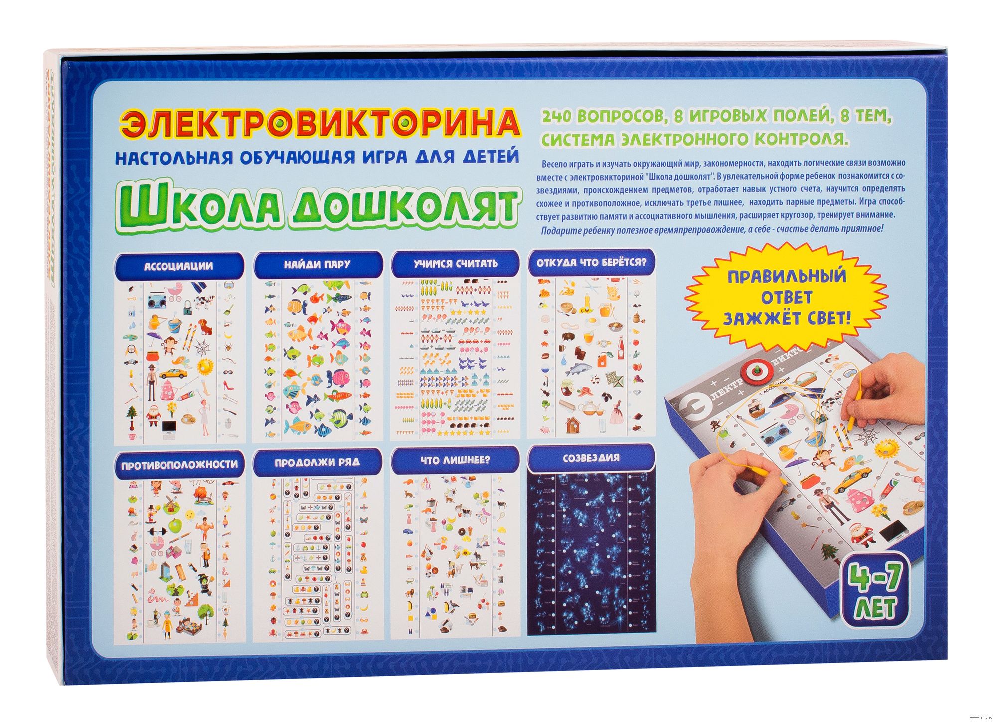 Игра способствует развитию памяти и ассоциативного мышления, расширяет кругозор, тренирует внимание. Благодаря системе электронного контроля ребенок может играть самостоятельно, не прибегая к постоянной помощи взрослого.