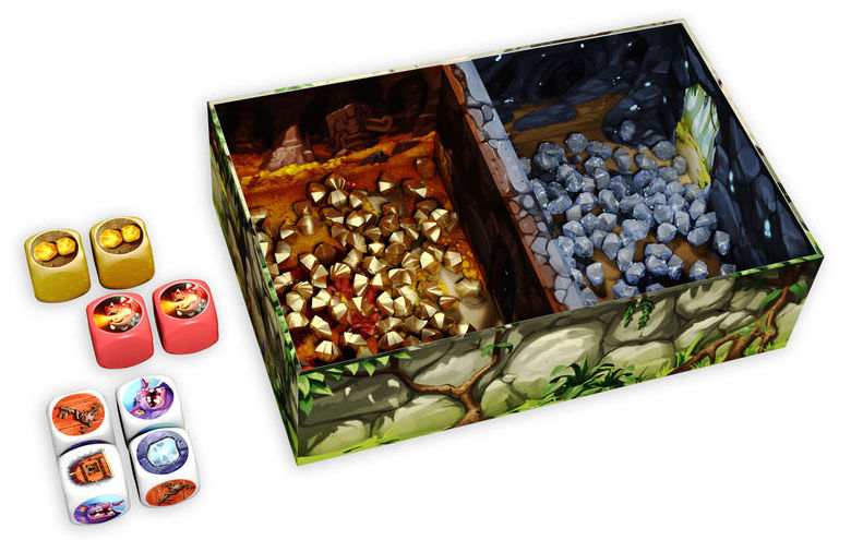 И вот здесь начинается самое интересное: другие кладоискатели тут же обращаются против вас! Пока вы разыскиваете золотые самородки, остальные игроки стараются как можно быстрее выкинуть на красных кубиках двух драконов. Как только это происходит, огнедышащий страж просыпается, а вы теряете все сокровища, добытые в этом раунде.