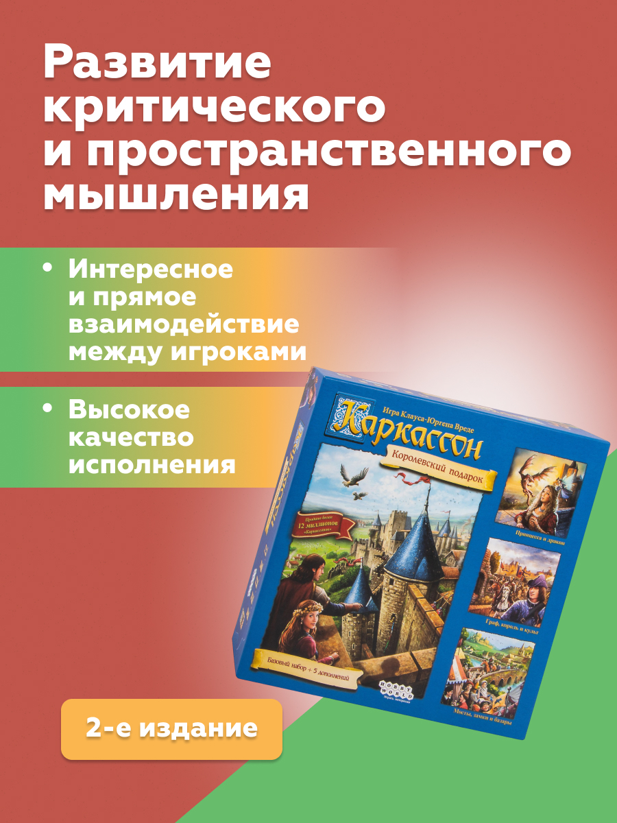"Каркассон" – настоящий шедевр в мире настольных игр, уже многие годы объединяющий за столами людей всех возрастов по всему миру. Игра стала лауреатом множества выставок и премий, а также послужила основой для многочисленных дополнений и альтернативных версий.