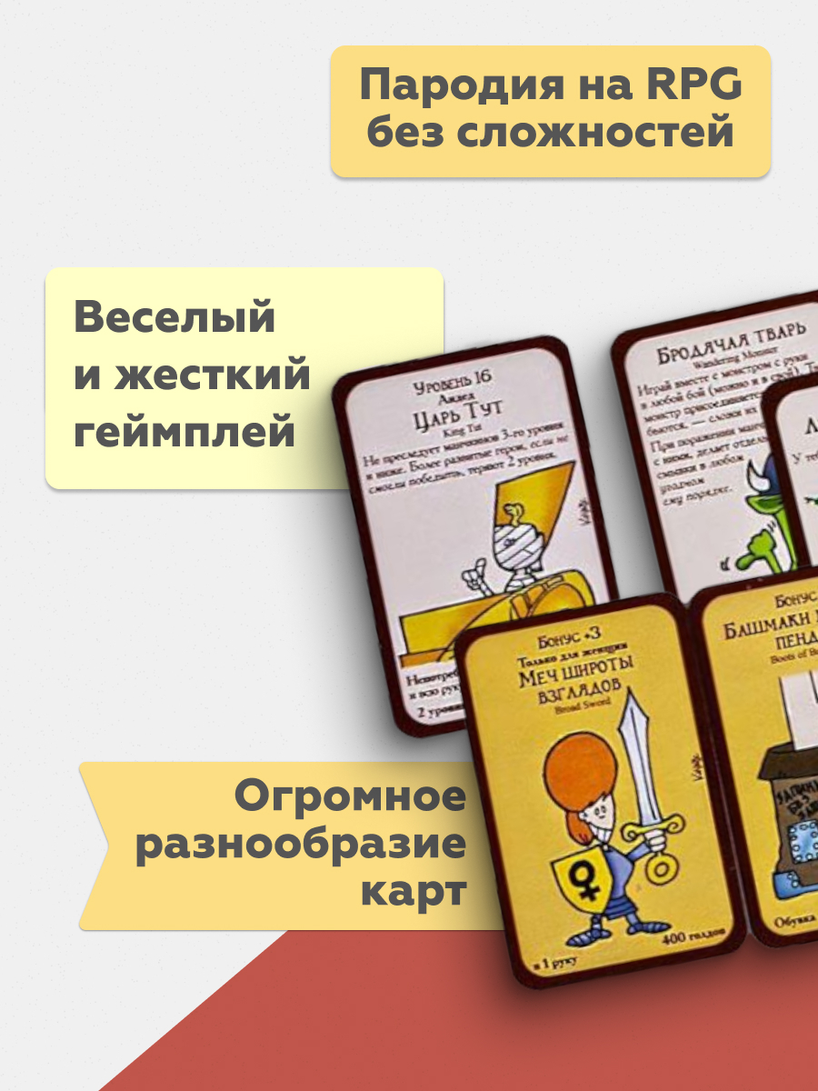 Эта независимая карточная игра даёт неоценимый опыт исследования подземелий без всяких ролевых заморочек. Вам и нужно-то всего: убивать монстров и собирать магические шмотки. И какие шмотки! Наденьте Шлем-Рогач и Башмаки Могучего Пенделя. Возьмите Посох Напалма... или, может, Бензопилу Кровавого Расчленения. Начните карьеру с уничтожения Травы в Горшке и Сочащейся Слизи, чтобы позже, набравшись опыта и наглости, победить в бесчестном бою Плутониевого Дракона...