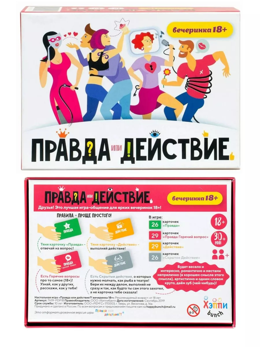 Это идеальная игра для смешанной компании на вечеринке. Кроме заданий на правду и на действие тут есть горячие вопросы, которые заставят откровенничать, и скрытые действия, которые нужно выполнять так, будто вы сами этого захотели. Играть очень просто – тяните карточку и выполняйте. Игру можно растянуть на весь вечер – у вас будет много тем для обсуждений.
