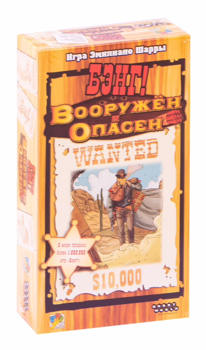 «Вооружён и опасен» – продолжение карточного бестселлера «Бэнг!». В распоряжении персонажей – новые карты опасностей и кубики зарядов для их активации. Шерифу и его помощникам придётся забыть о сне и покое, отбиваясь от виртуозных стрелков и ловких бандитов!