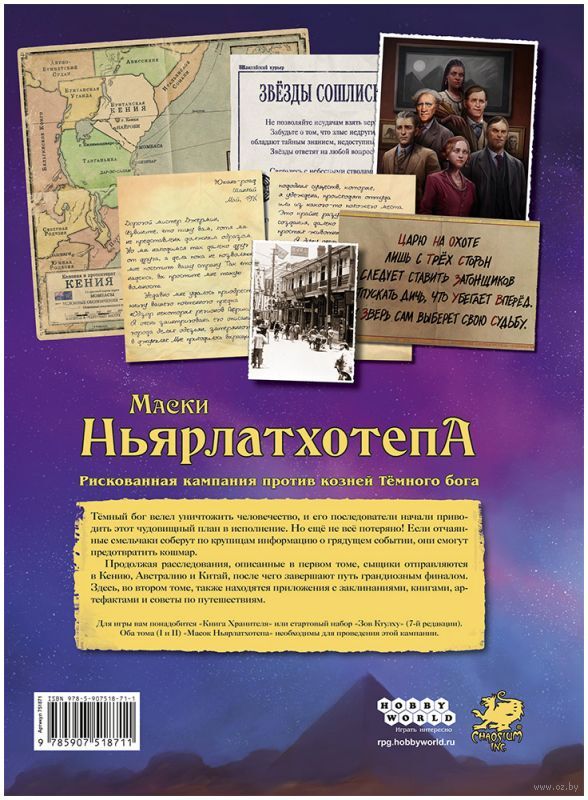 Внимание! Это дополнение. Для игры вам понадобится "Зов Ктулху: Книга Хранителя" или "Зов Ктулху: Стартовый набор" 7-й редакции. Для проведения этой кампании необходимы оба тома "Масок Ньярлатхотепа".