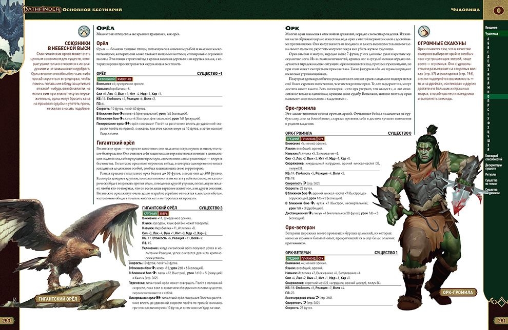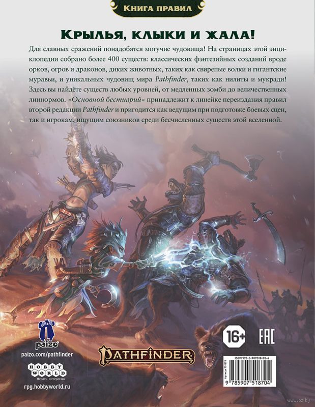 Для славных сражений понадобятся могучие чудовища! На страницах этой энциклопедии собрано более 400 существ: классических фэнтезийных созданий вроде орков, огров и драконов, диких животных, таких как свирепые волки и гигантские муравьи, и уникальных чудовищ мира Pathfinder, таких как нилиты и мукради!