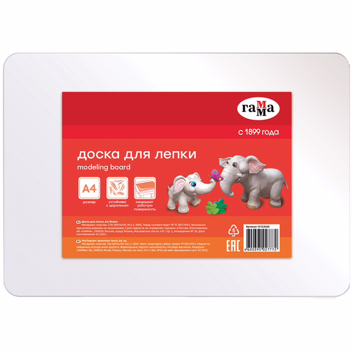Доска для лепки изготовлена из пластика белого цвета, материал устойчив к царапинам. Упакована в термоусадочную пленку с ярким вкладышем.