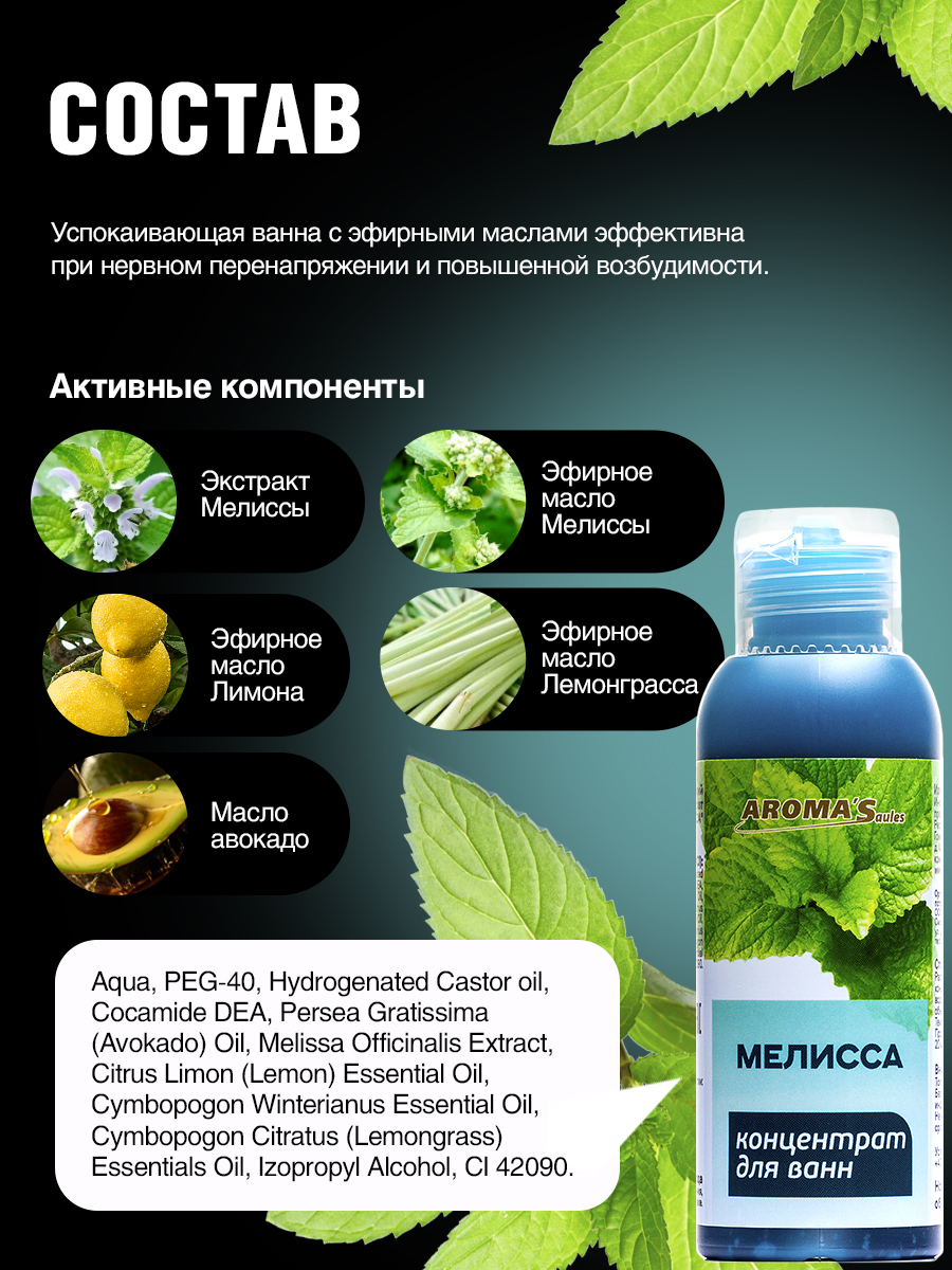 Эффективен при нервном напряжении и повышенной возбудимости. Эфирное масло мелиссы благотворно влияет на организм: расслабляет мышцы и нервную систему, оказывает успокаивающее действие, облегчает засыпание и улучшает сон.