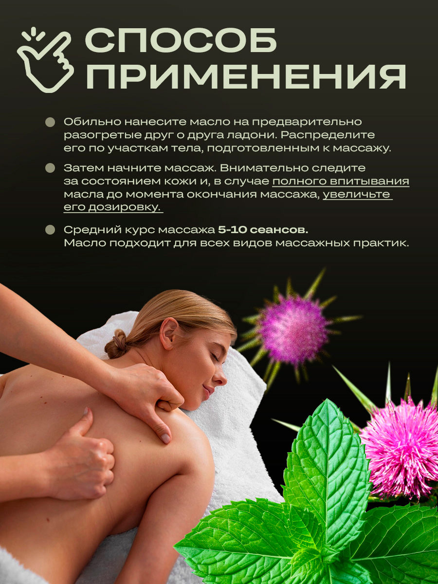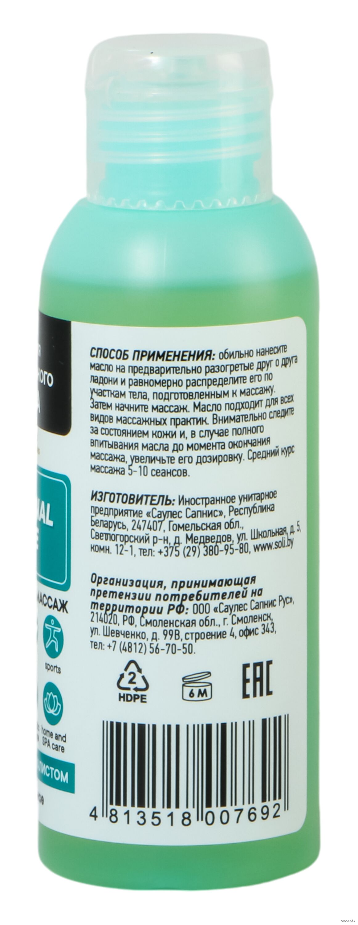 Применять для профессионального массажа. Перед нанесением на кожу согреть в ладонях.