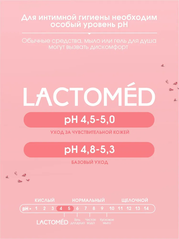 Все средства Lactomed содержат молочную кислоту, которая поддерживает естественную кислотную среду интимной зоны, а также увлажняющие, антисептические и противовоспалительные компоненты. Гели для интимной гигиены Lactomed не содержат мыла, SLS/SLES, парабенов, красителей, силиконов, спирта. Регулярное использование средств Lactomed препятствует появлению неприятного запаха, зуда, жжения, покраснений.
