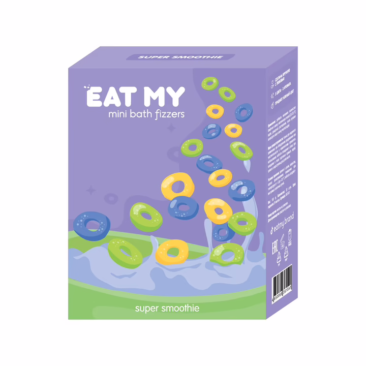 Мини-бомбочки EAT MY созданы, чтобы заряжать тебя энергией и хорошим настроением в любой момент: просто насыпь их в теплую воду, когда решишь принять ванну. В коробке 30 бомбочек, рассчитанных на 2-3 применения, но размер порции зависит только от тебя – чем больше, тем веселее! Разноцветные колечки окрасят воду в нежные цвета, наполнят воздух фруктовыми ароматами и позабавят тебя шипением своих пузырьков. У каждого цвета свой уникальный аромат: ананас, черника или лайм (в набор входит по 10 штук каждого цвета\аромата). Смешивай их по настроению или пробуй по очереди.