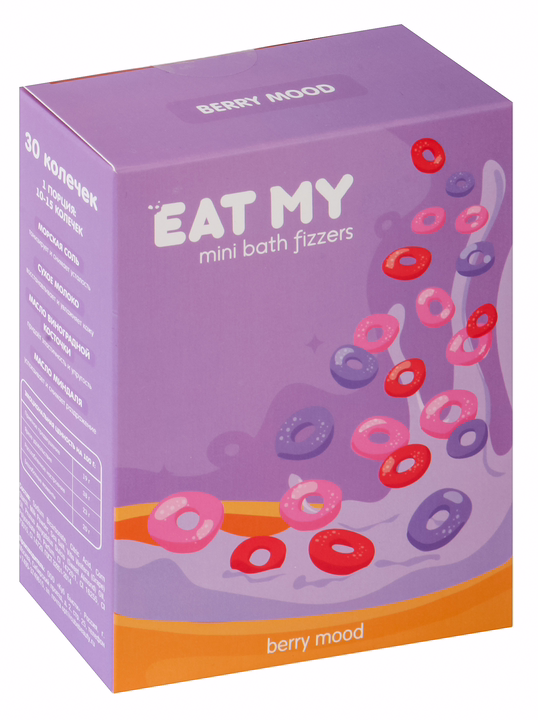 Мини-бомбочки EAT MY созданы, чтобы заряжать тебя энергией и хорошим настроением в любой момент: просто насыпь их в теплую воду, когда решишь принять ванну. В коробке 30 бомбочек, рассчитанных на 2-3 применения, но размер порции зависит только от тебя – чем больше, тем веселее! Разноцветные колечки окрасят воду в нежные цвета, наполнят воздух фруктовыми ароматами и позабавят тебя шипением своих пузырьков. У каждого цвета свой уникальный аромат: вишня, клубника или ежевика (в набор входит по 10 штук каждого цвета\аромата). Смешивай их по настроению или пробуй по очереди.