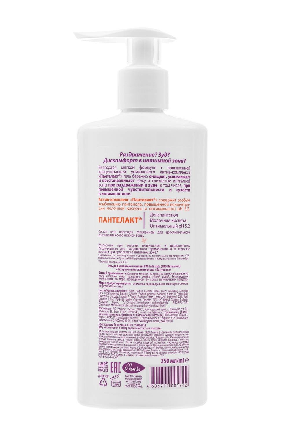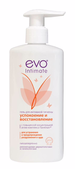 Благодаря мягкой формуле с повышенной концентрацией уникального актив-комплекса Пантелакт® гель для интимной гигиены EVO Intimate "Успокоение и восстановление" бережно очищает, успокаивает и восстанавливает кожу и слизистые интимной зоны при раздражении и зуде, в том числе, при повышенной чувствительности и сухости в интимной зоне.