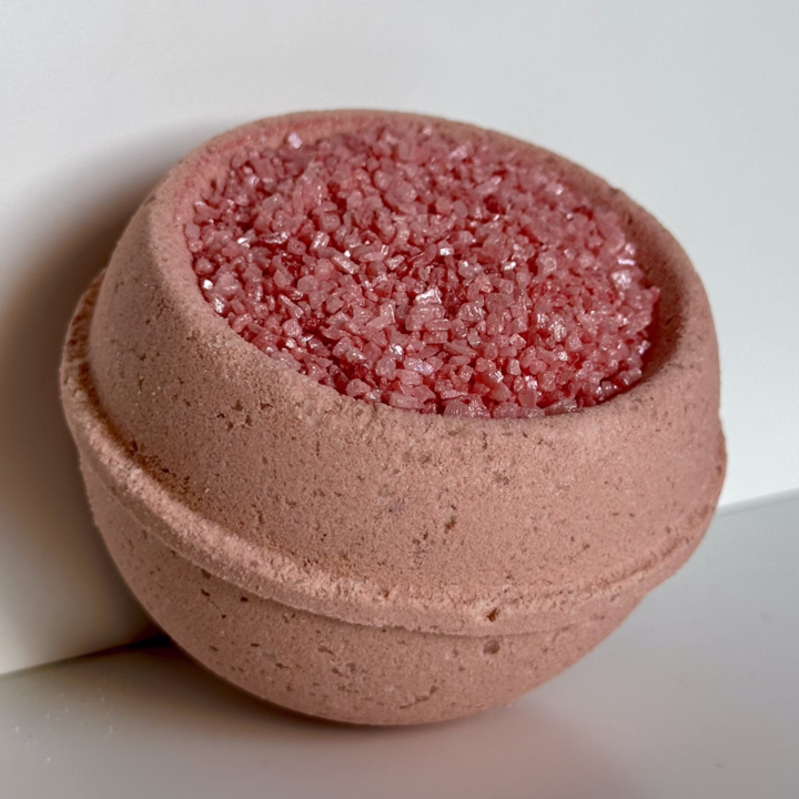 Шипящая бомбочка для ванн в виде чаши с мерцающей солью.