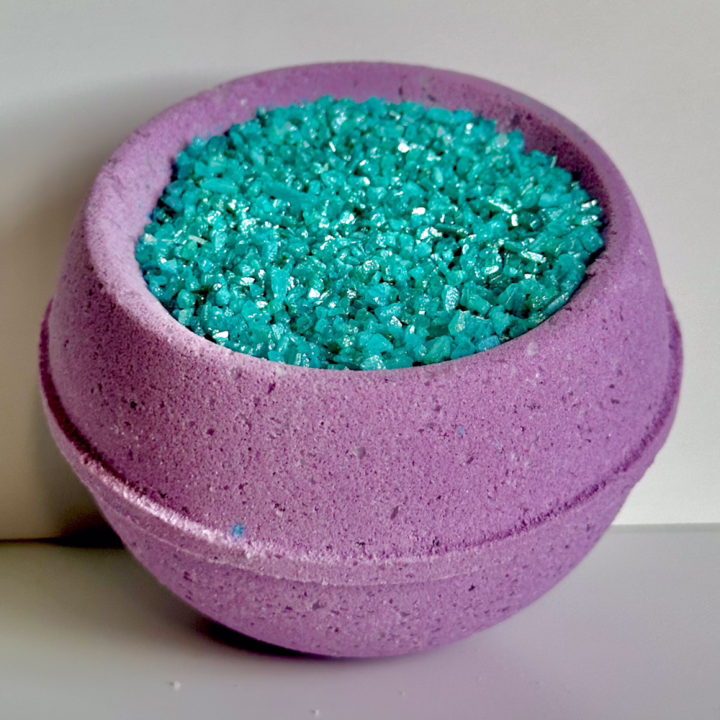 Шипящая бомбочка для ванн в виде чаши с мерцающей солью.