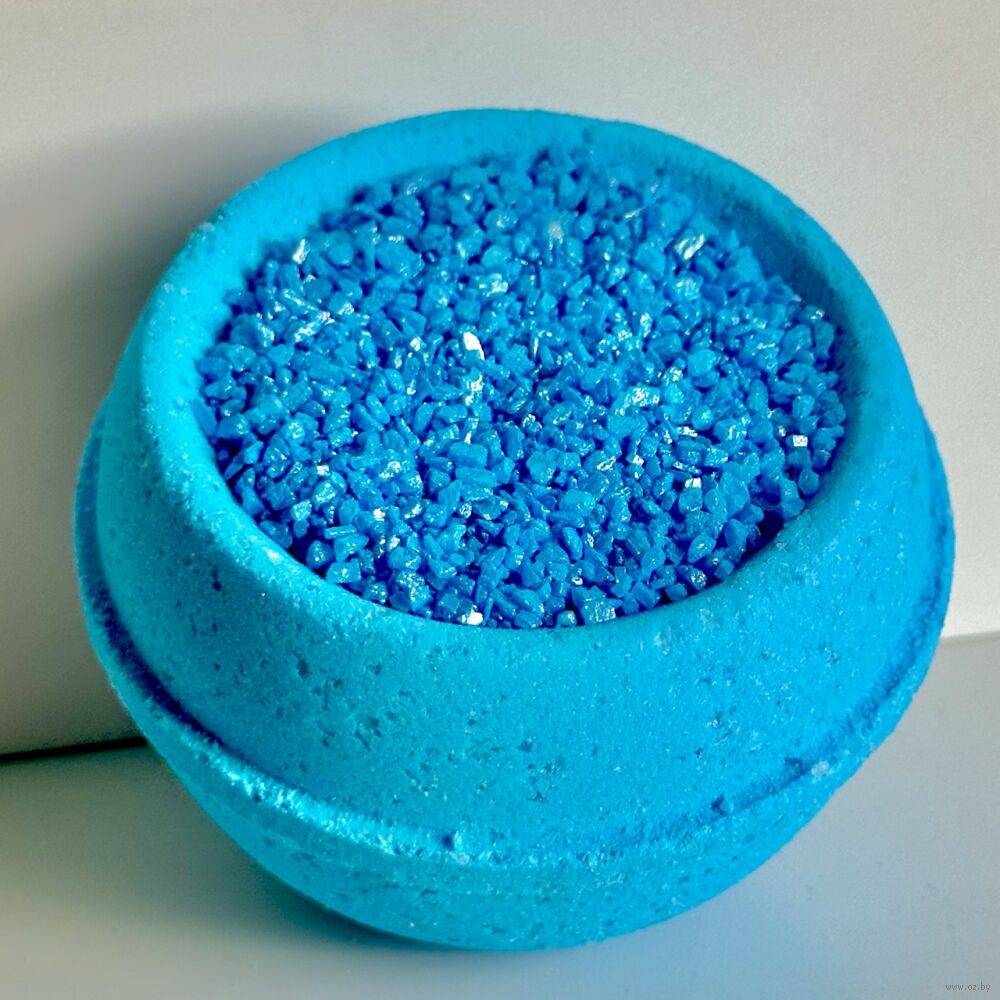 Шипящая бомбочка для ванн в виде чаши с мерцающей солью.