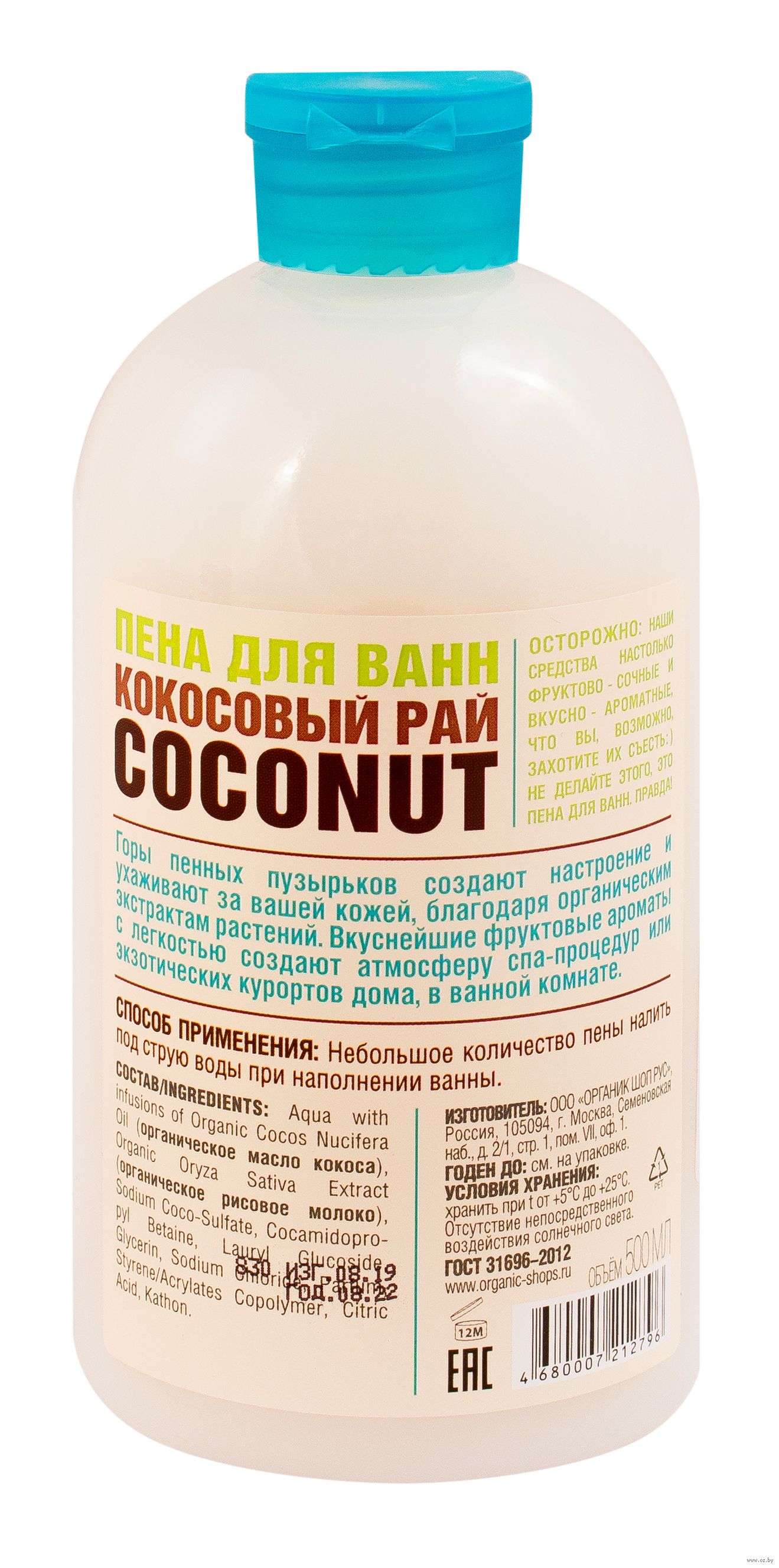 Aqua with infusions of Organic Cocos Nucifera (Coconut) Oil (органическое масло кокоса), Organic Oryza Sativa (Rice) Extract (органическое рисовое молоко), Magnesium Laureth Sulfate, Cocamidopropyl Betaine, Lauryl Glucoside, Glycerin, Benzyl Alcohol, Benzoic Acid, Sorbic Acid, Sodium Chloride, Citric Acid, Parfum.