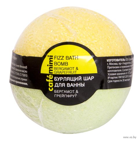 Бурлящий шар для ванны "Бергамот и грейпфрут" порадует тебя тонизирующим ароматом, натуральными маслами и экстрактами, которые помогут провести приятную СПА-процедуры дома!