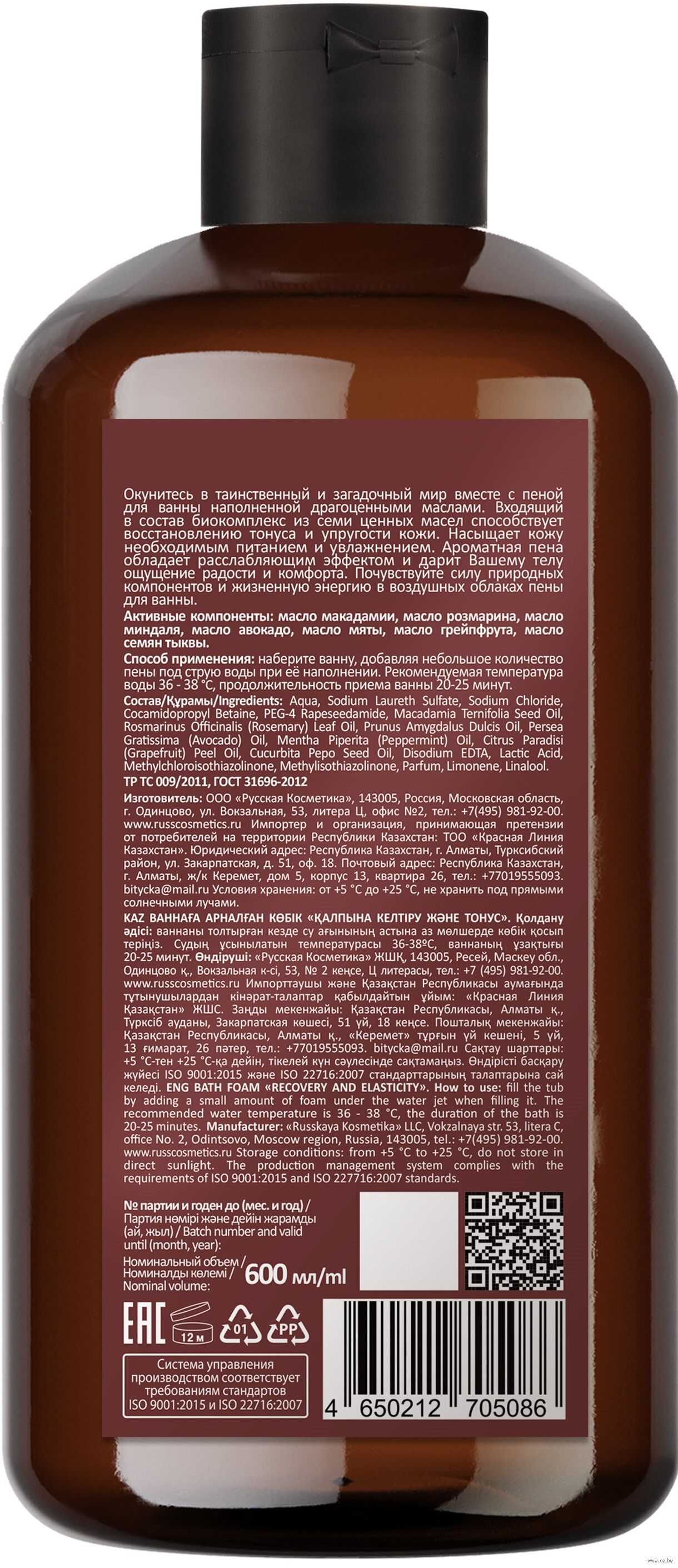 Окунитесь в таинственный и загадочный мир вместе с пеной для ванны наполненной драгоценными маслами. Входящий в состав биокомплекс из семи ценных масел способствует восстановлению тонуса и упругости кожи. Насыщает кожу необходимым питанием и увлажнением. Ароматная пена обладает расслабляющим эффектом и дарит Вашему телу ощущение радости и комфорта. Почувствуйте силу природных компонентов и жизненную энергию в воздушных облаках пены для ванны.