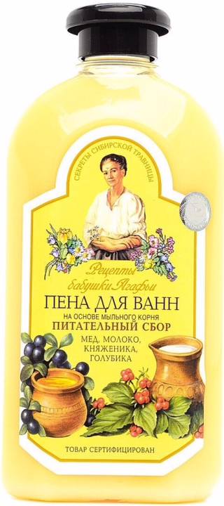 Так и есть! Мед и молоко снимают раздражение, придают коже мягкость. Ягоды княженики и голубика обогащают кожу питательными веществами. Питательная пена для ванн действует успокаивающе на кожу, стимулирует защитные функции организма, придает коже мягкость, нежность и здоровый вид.