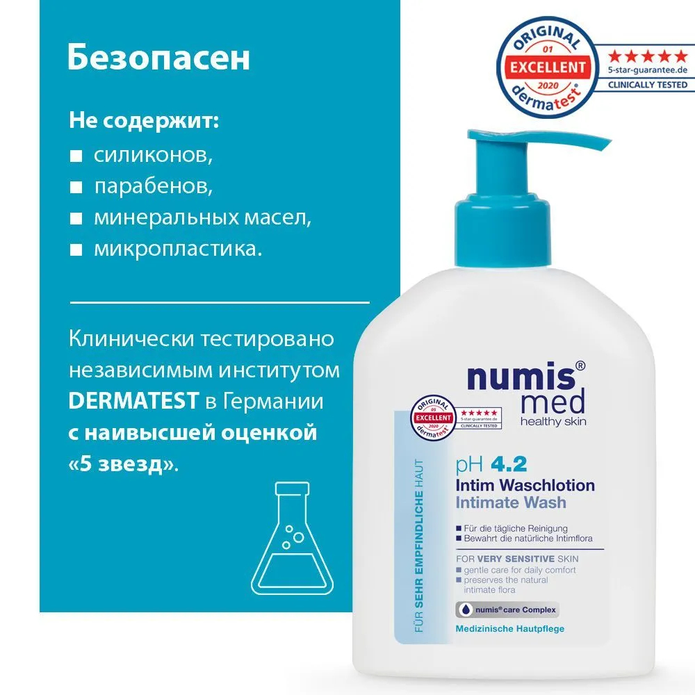 Косметическое средство для деликатного очищения интимной зоны у женщин. Не угнетает естественную микрофлору интимной зоны благодаря оптимальному уровню рH 4,2.