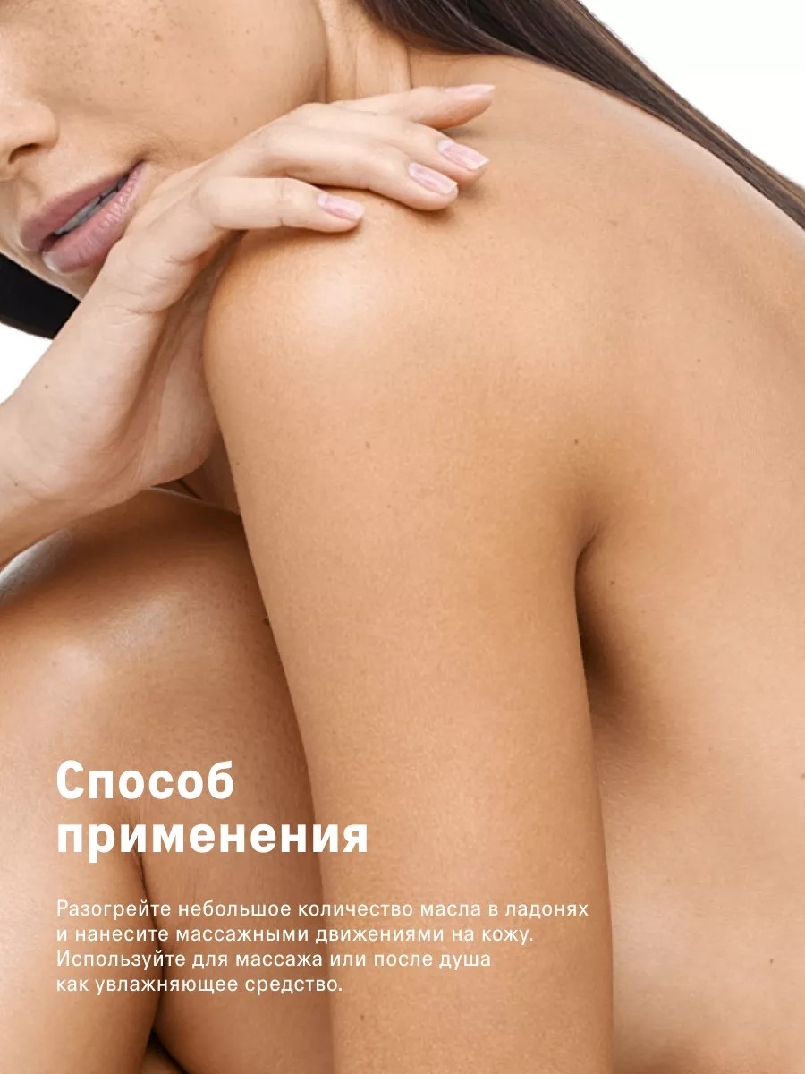 Разогрейте небольшое количество масла в ладонях и нанесите массажными движениями на кожу. Используйте после ванны или душа.Состав