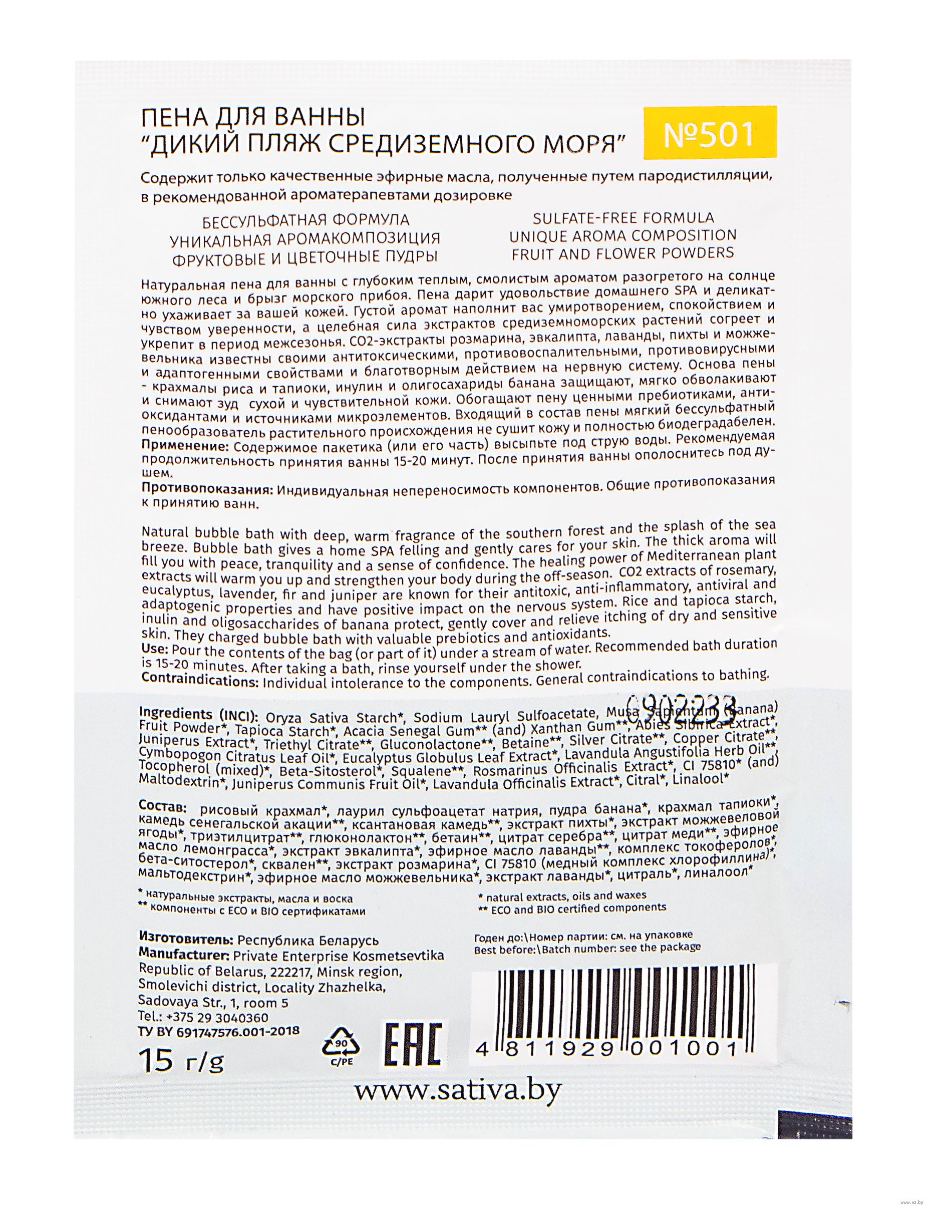 Содержимое пакетика (или его часть) высыпьте под струю воды. Рекомендуемая продолжительность принятия ванны 15-20 минут. После принятия ванны ополоснитесь под душем. Противопоказания: Индивидуальная непереносимость компонентов. Общие противопоказания к принятию ванн.Состав