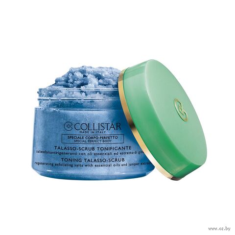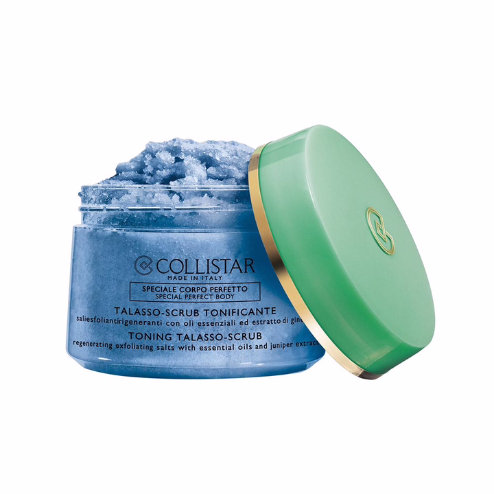 Collistar Toning Talasso Scrub необычный продукт, который сочетает в себе преимущества терапии talasso и ароматерапии сардинского можжевельника. Смесь сардинской морской соли («соляной цветок») особенно богата, которая идеально отшелушивает и детоксифицирует кожу. Ягоды можжевельника улучшают упругость и плотность кожи.