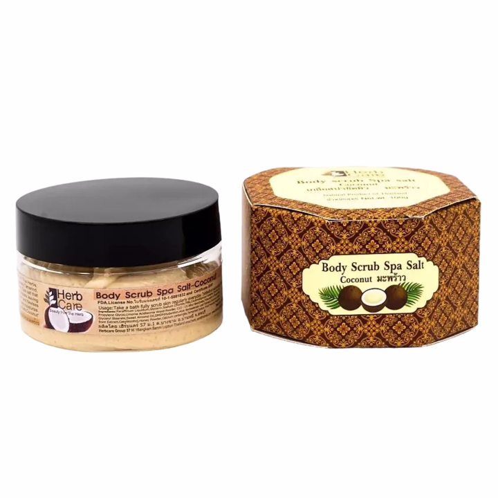Солевой скраб для тела на основе натуральных масел кокоса и сладкого миндаля и экстрактов тайских трав обладает отшелушивающими свойствами, питает кожу, улучшает кровообращение.