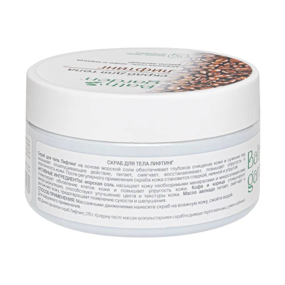 Скраб для тела "Лифтинг" на основе морской соли обеспечивает глубокое очищение кожи и сужение пор, оказывает отшелушивающее действие, питает, смягчает, восстанавливает, повышает упругость и эластичность кожи.