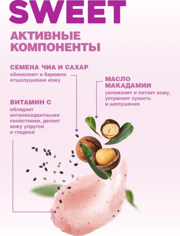 Glycerin, Sucrose (сахар), Aqua, Prunus Amygdalus Dulcis Oil, Macadamia Integrifolia/Tetraphylla Seed Oil (масло макадамии), Fragaria Vesca Fruit Extract, Fragaria Vesca Fruit Powder (ягоды клубники), Salvia Hispanica Seed (семена чиа), Rubus Idaeus Fruit Powder (ягоды малины), Sodium Ascorbyl Phosphate (витамин С), Acrylates/C10-30 Alkyl Acrylate Crosspolymer, Tocopheryl Acetate, Xanthan Gum, Sodium Hydroxide, Benzyl Alcohol, Parfum, CI 17200.Мы используем файлы cookie для обеспечения удобства работы с сайтом и его контакта с пользователем.