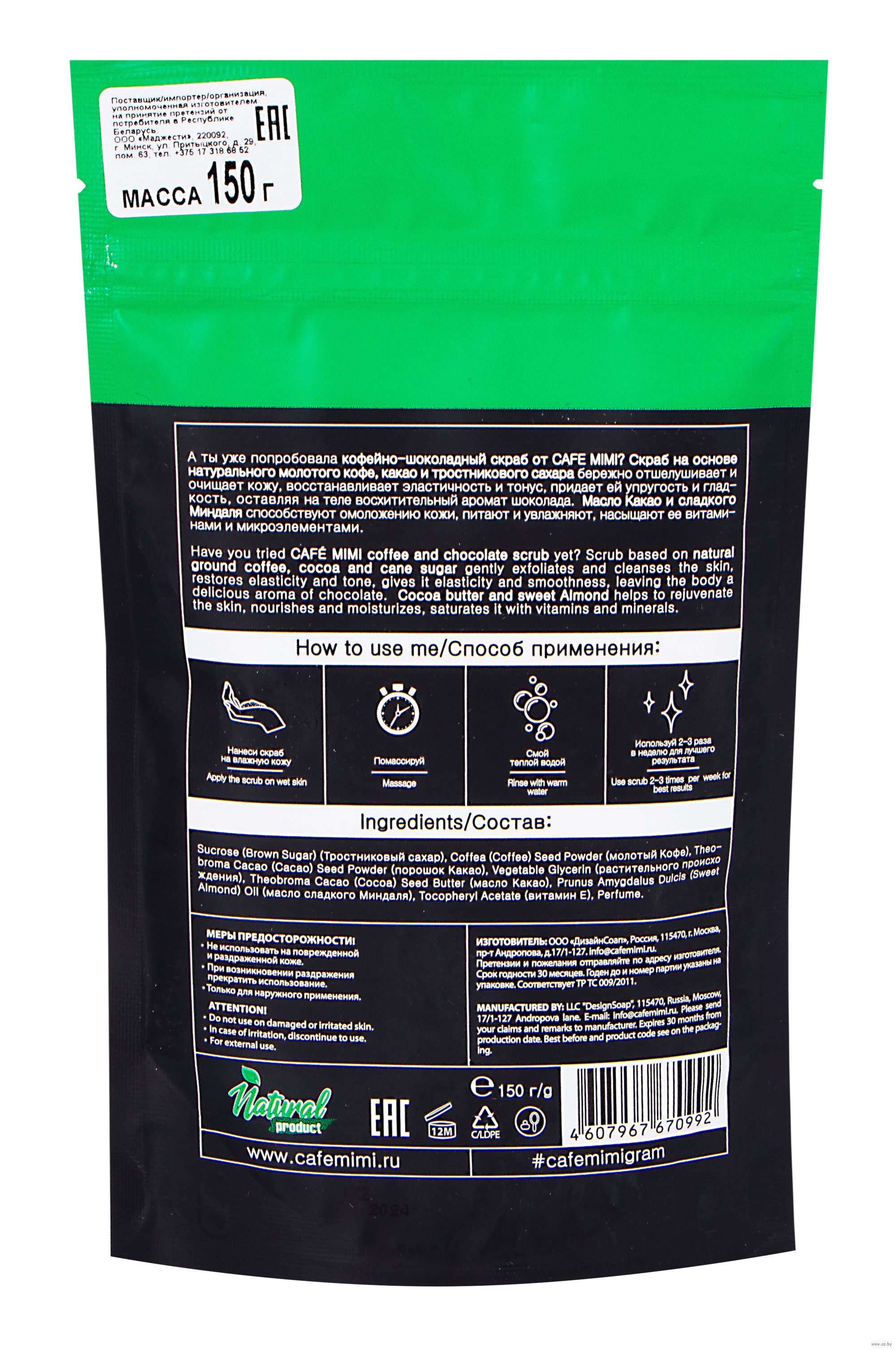 Sucrose (Brown Sugar) (Тростниковый сахар), Coffea (Coffee) Seed Powder (молотый Кофе), Theobroma Cacao (Cacao) Seed Powder (Какао тертое), Vegetable Glycerin (растительного происхождения), Theobroma Cacao (Cocoa) Seed Butter (масло Какао), Prunus Amygdalus Dulcis (Sweet Almond) Oil (масло сладкого Миндаля), Tocopheryl Acetate (витамин Е), Perfume.Мы используем файлы cookie для обеспечения удобства работы с сайтом и его контакта с пользователем.