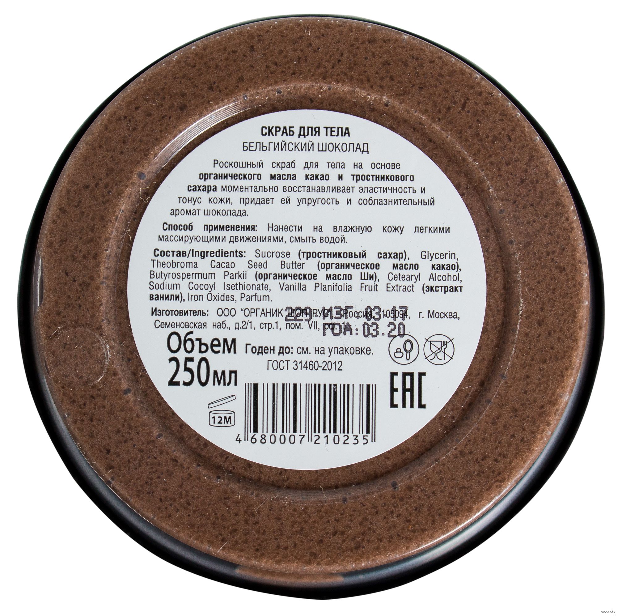 Роскошный скраб для тела на основе органического масла какао и тростникового сахара моментально восстанавливает эластичность и тонус кожи, придает ей упругость и соблазнительный аромат шоколада.