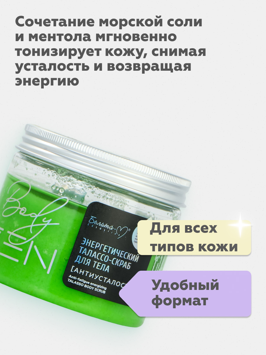 Природная сила морской соли, усиленная натуральными микросферами вулканического риолита, в сочетании с эфирными маслами и особым купажом бодрящих СО2-экстрактов превращает средство в инструмент активного обновления.