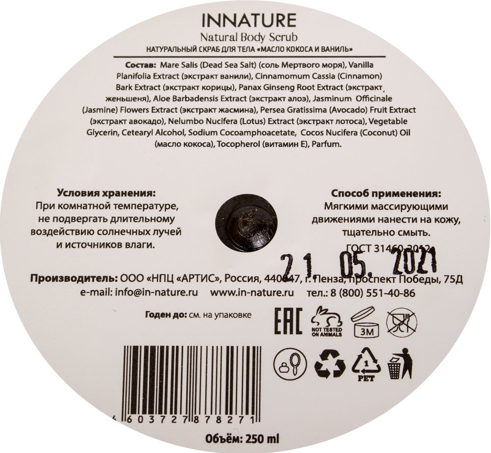 Mare Salis (Dead Sea Salt) (соль Мертвого моря), Vanilla Planifolia Extract (экстракт ванили), Cinnamomum Cassia (Cinnamon) Bark Extract (экстракт корицы), Panax Ginseng Root Extract (экстракт женьшеня), Aloe Barbadensis Extract (экстракт алоэ), Jasminum O cinale (Jasmine) Flowers Extract (экстракт жасмина), Persea Gratissima (Avocado) Fruit Extract (экстракт авокадо), Nelumbo Nucifera (Lotus) Extract (экстракт лотоса), Vegetable Glycerin, Сetearyl Alcohol, Sodium Cocoamphoacetate, Cocos Nucifera (Coconut) Oil (масло кокоса), Tocopherol (витамин Е), Parfum.Мы используем файлы cookie для обеспечения удобства работы с сайтом и его контакта с пользователем.