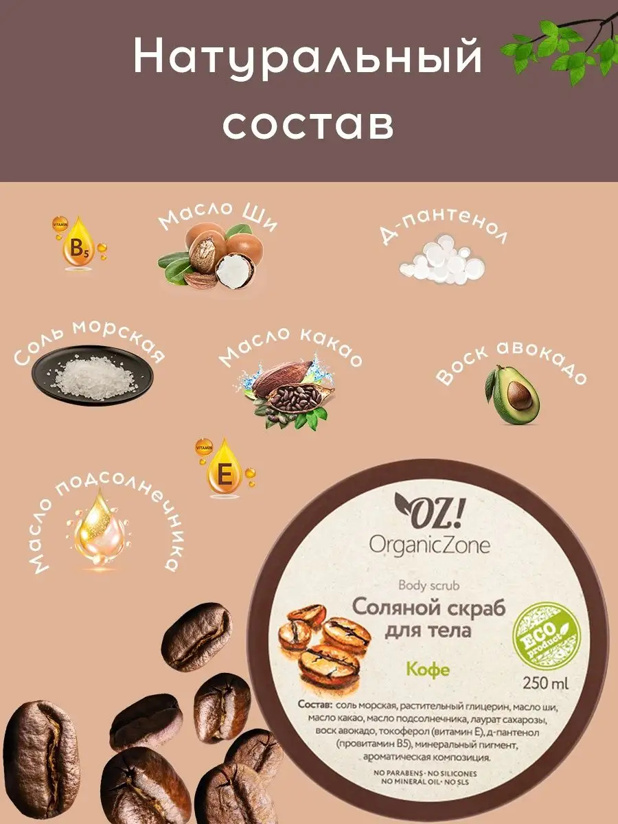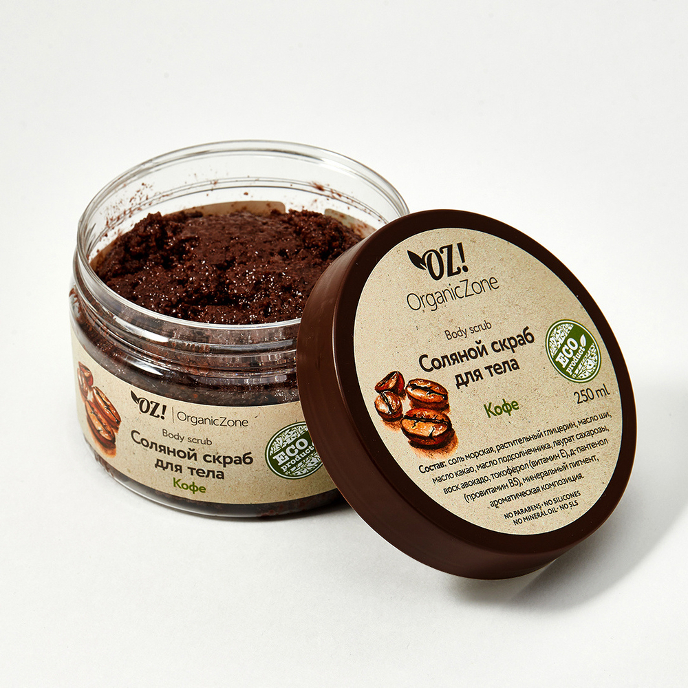Соляной скраб для тела "Кофе" удаляет омертвевшие клетки и стимулирует клеточную активность, тонизирует и разглаживает кожу.